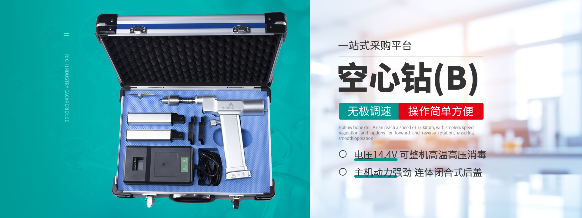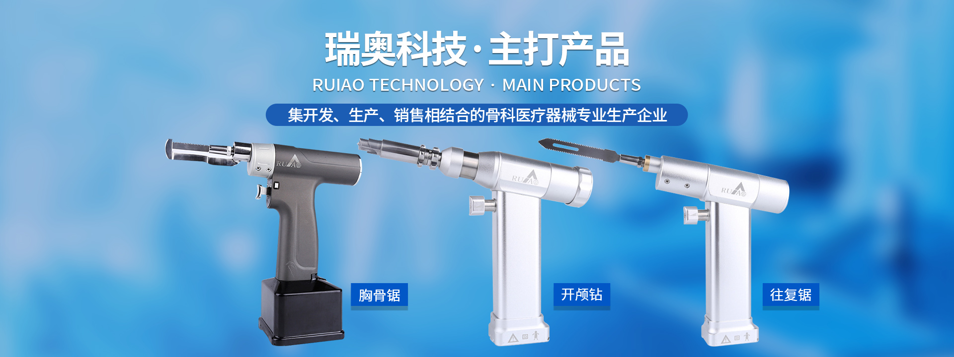 鹽城瑞奧科技有限公司主要產品:醫(yī)用電動鋸鉆系列(可高溫高壓消毒和熏蒸消毒兩種):包含骨鉆、擺鋸、胸骨鋸、空心骨鉆、開顱鉆、顱骨銑等等,適用于骨科、腦外科、神經外科、胸外科、手足及顯微外科、脊柱外科、整形外科等各種手術的要求。電動石膏鋸可切割高分子繃帶、石膏等?;A器械系列:咬骨鉗,髓核鉗,椎板咬骨鉗,持骨鉗,四肢骨折手術器械包等。